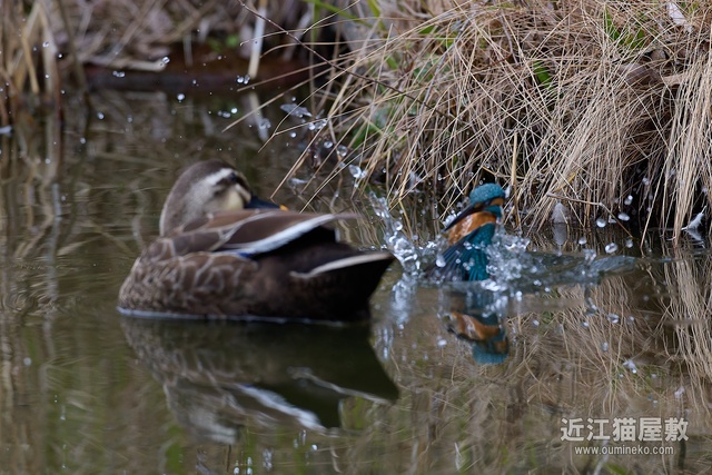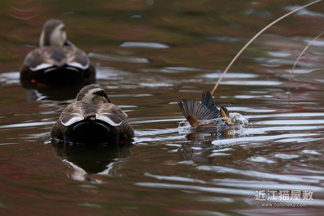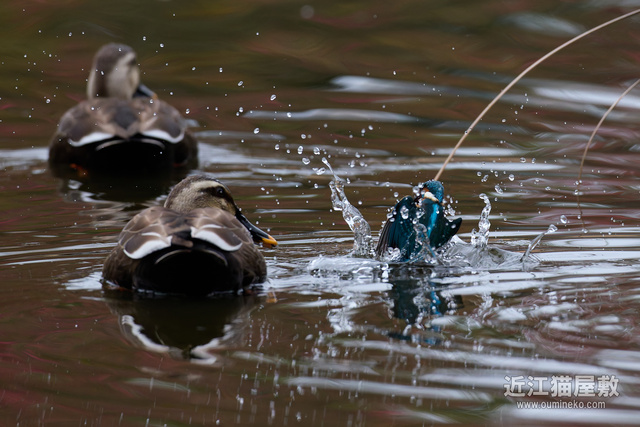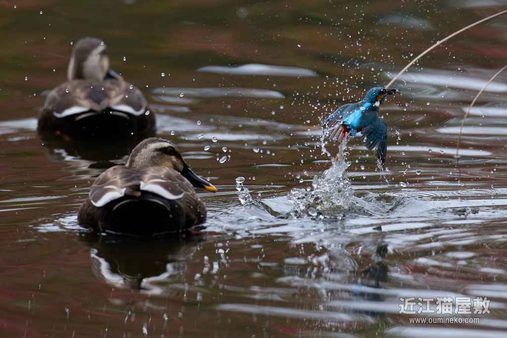 基本的に鴨が集まってる場所には、小動物が丁度良い深さにいるのでカワセミとセットになる事が多いんでしょうね。