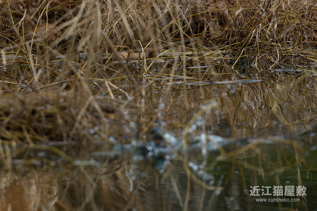 後でも書きますが、この時期はエサになる生きものが動き出してはいるものの、やはり池の端の方に集まっているので、飛び込み先はほぼそういう場所になります。