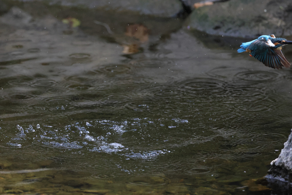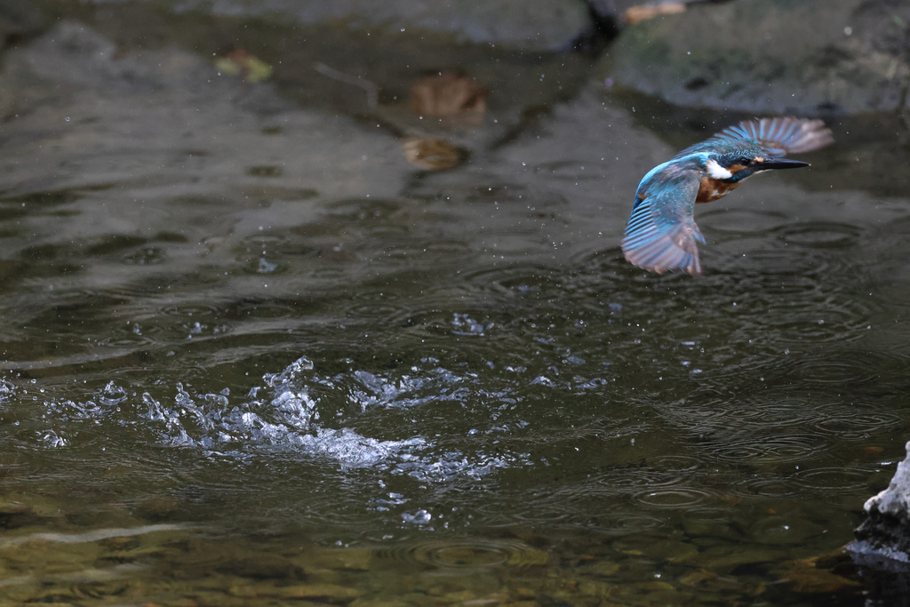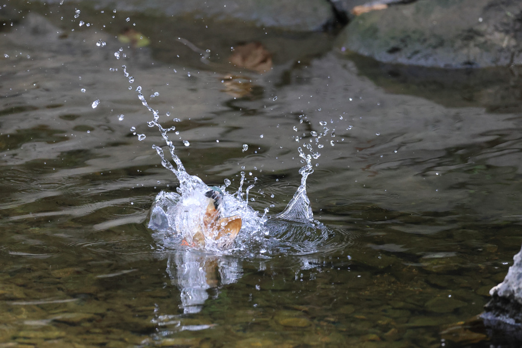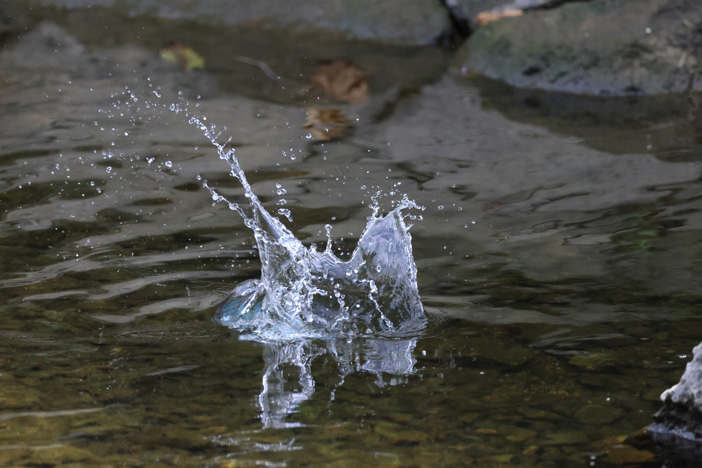 水しぶきが激しく散り、カワセミが体を反転させる瞬間はとても美しい :)