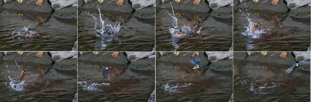 7フレーム目で完全にカワセミがAFから外れて水しぶきにピント