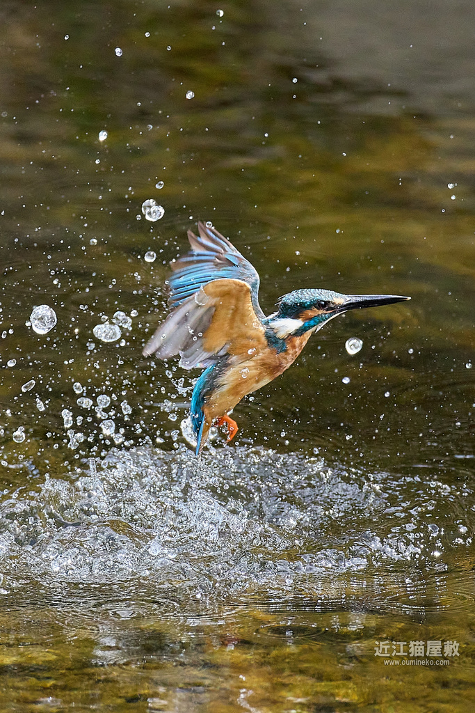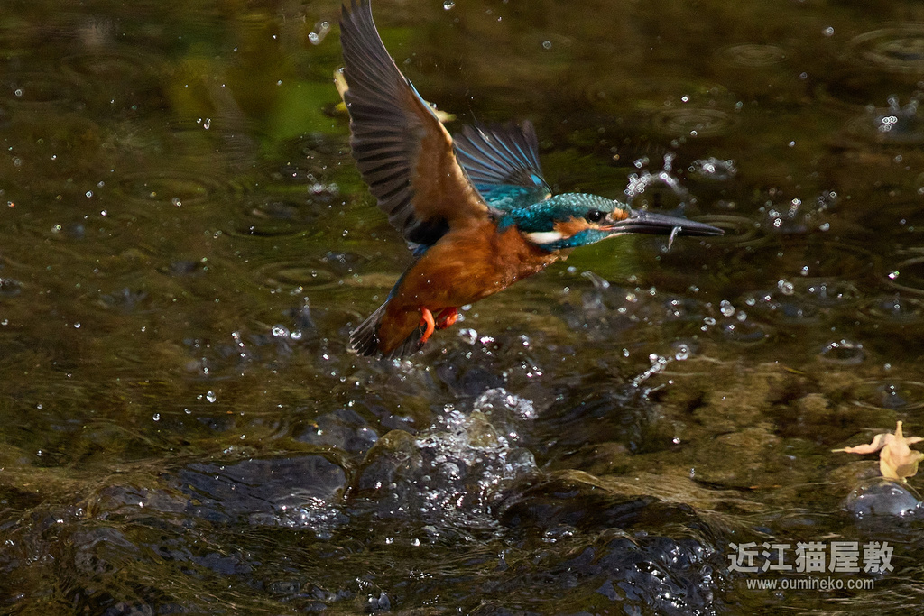 カワセミは基本的に嘴の方向の延長線上の水面に飛び込みますので、概ね飛び込み先の予測ができます。