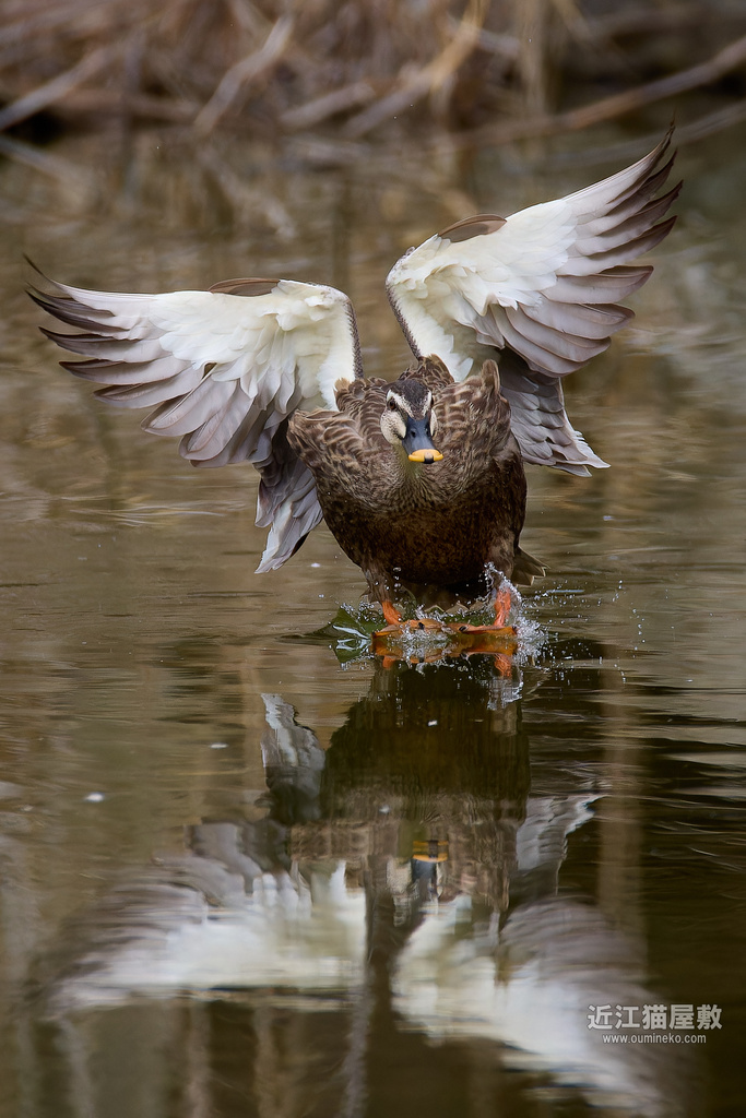 水しぶきがまるでカモの羽のように...。