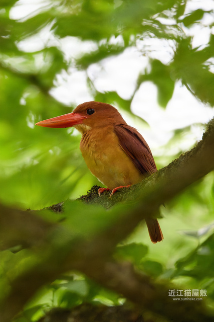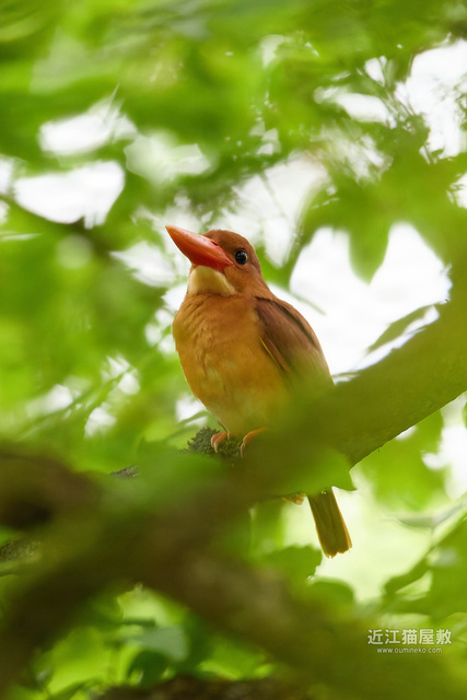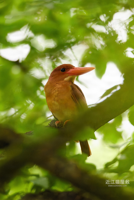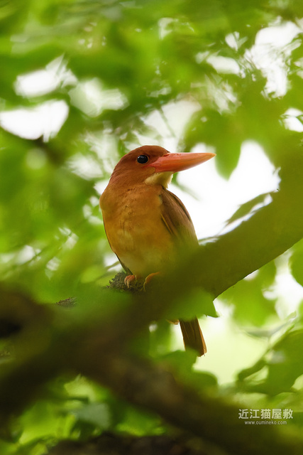 アカショウビンは鳴き声は聴こえるのですがとにかく撮影できない鳥で、偶然飛んでいくのが視界に入ると撮れるのですが、鳴いている状態で探す場合ってほぼ失敗する気が。