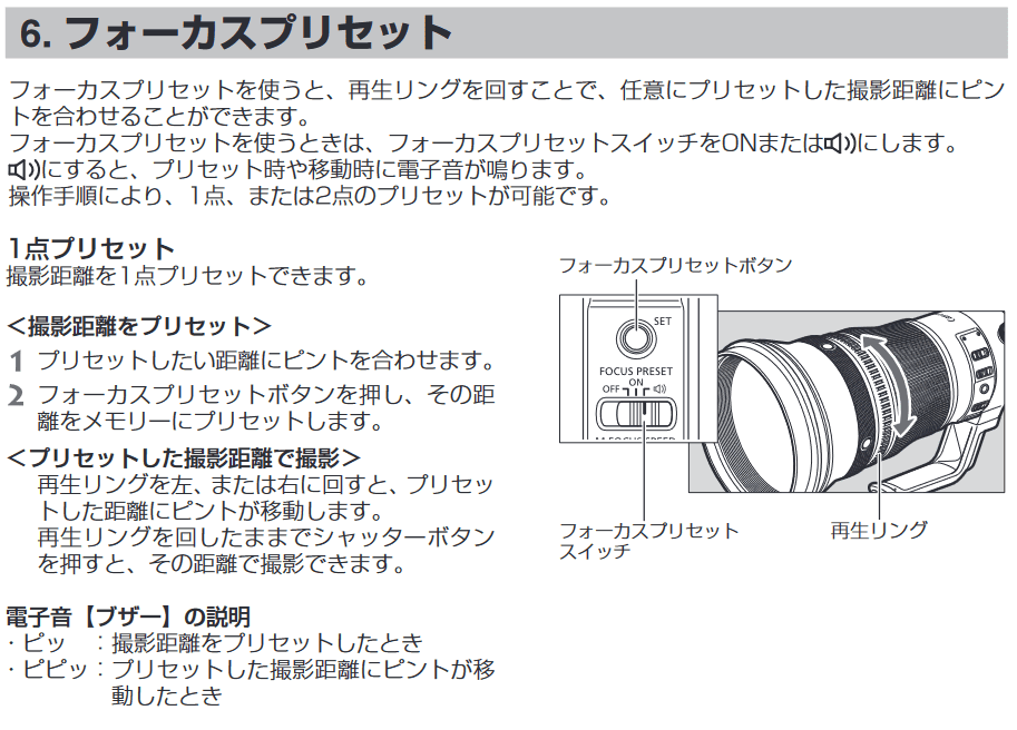 レンズのフォーカスプリセット