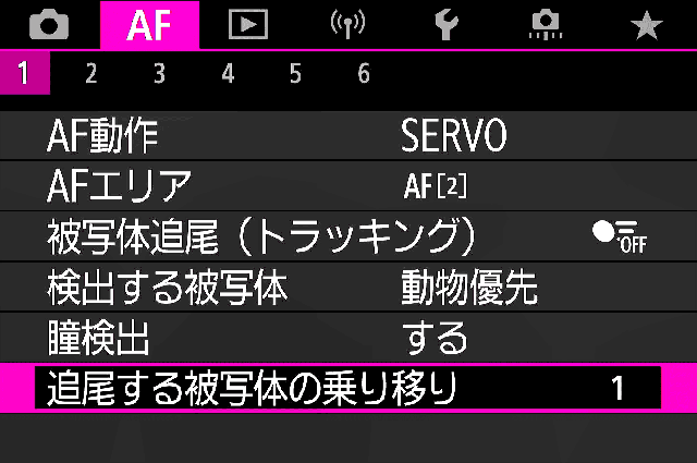 | 1. 追尾する被写体の乗り移り | 1 する/しないといったような極端な設定はとまりものでは必要ない感覚です。 |