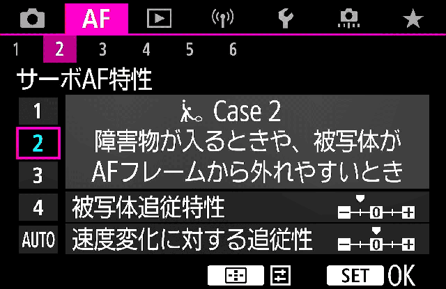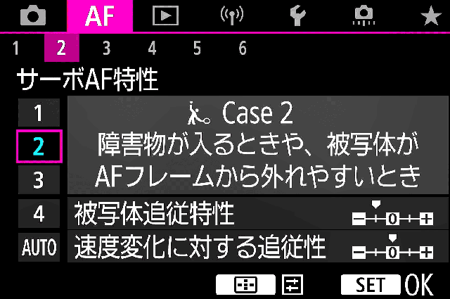 | 2. サーボAF特性★ | 2 今のところは詳細に設定しなくても2のデフォルトで特に問題なし |