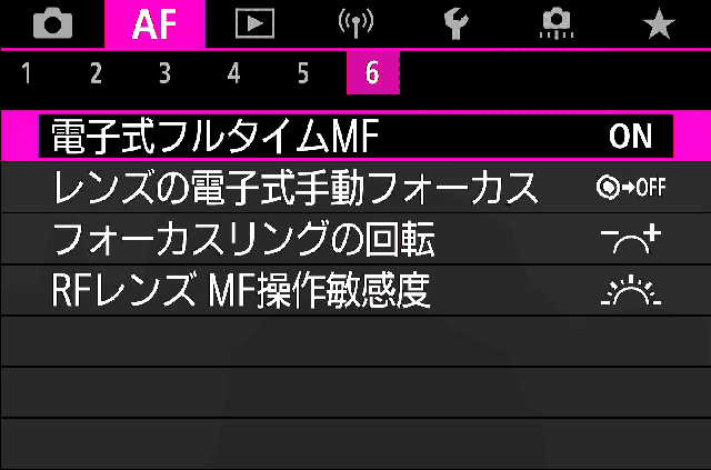 | 1. AF動作★ | R7のAF性能を使うにはSERVO固定です。 |