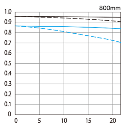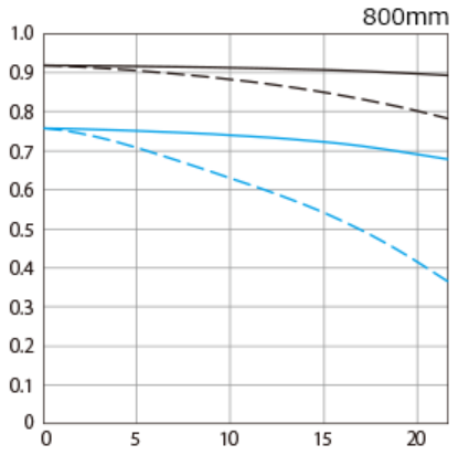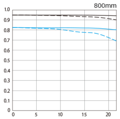 今、Canonの800mmレンジのレンズはMTFを見る限りでは解像力的には以下のような並びです。