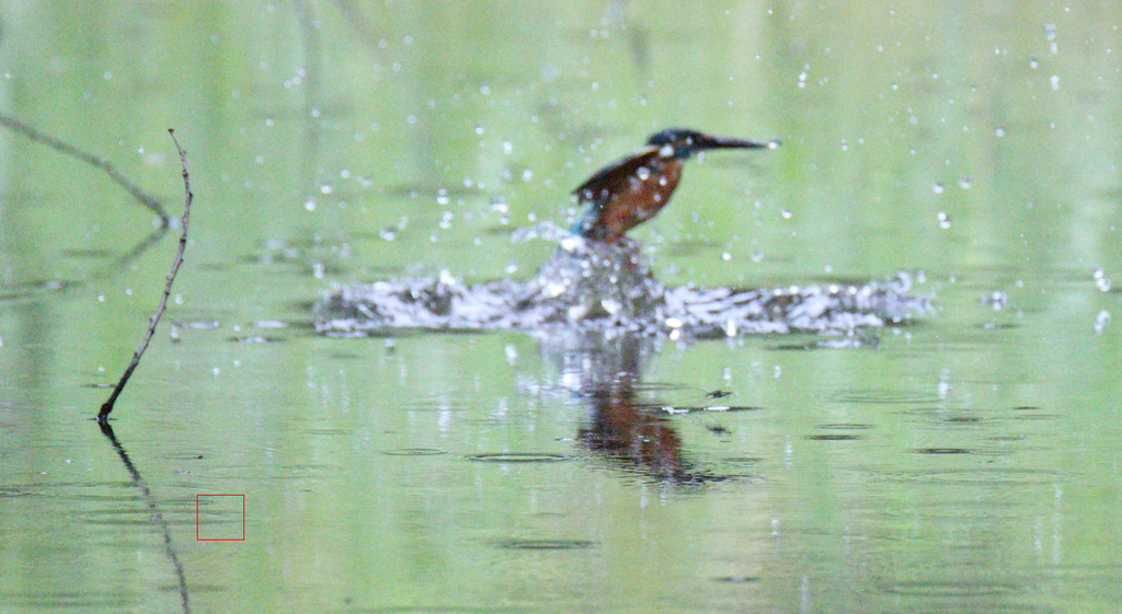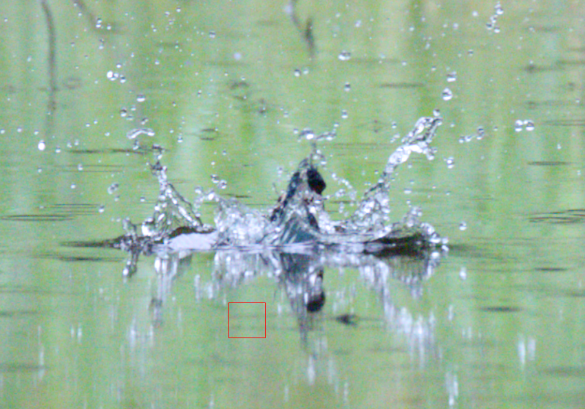 謎AF合焦エリアを掴み続けずに、カワセミ...というか水しぶきの方を掴んでくれています。