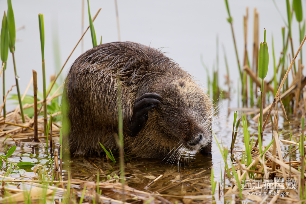 鳥を探して水辺を歩いていたら、眠そうにしている巨大ネズミを見つけたのでパシャリ。