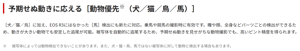 正直、EOS R3世代のCanonのAFは未完成感が半端なかったので期待したいと思います。