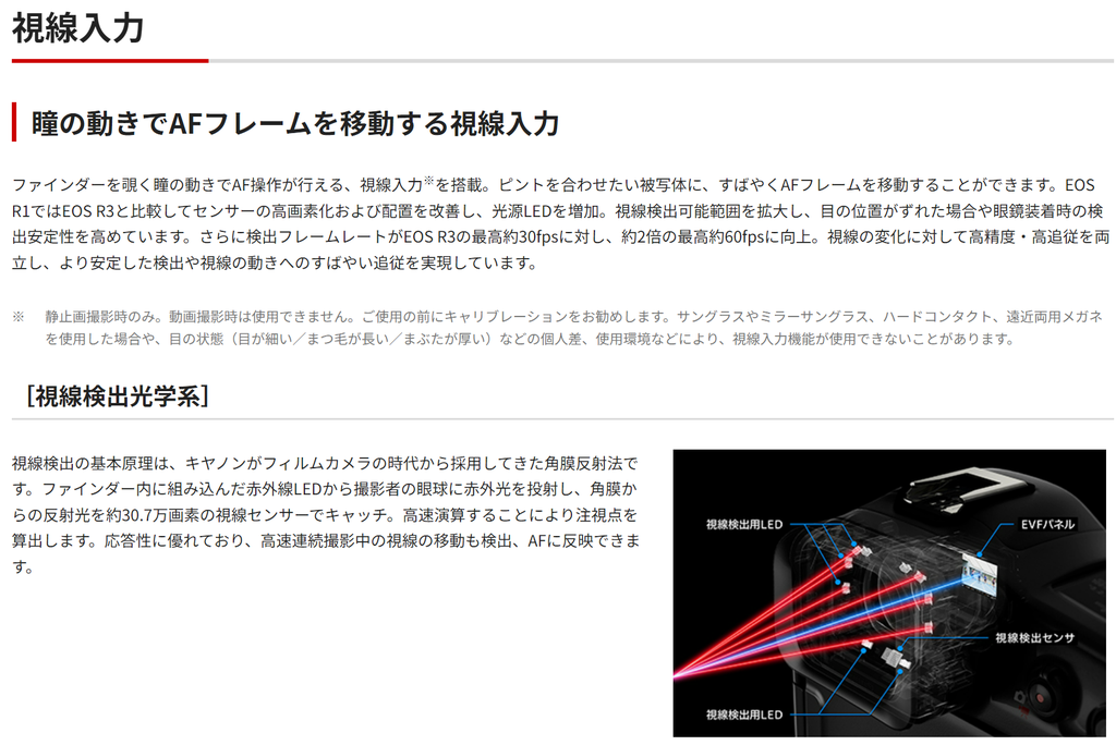 | 視線入力AF | あり (EOS R3の倍の60FPS) |