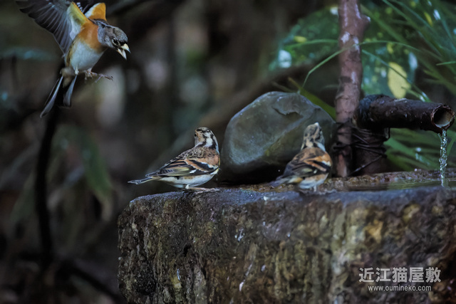 アトリが2羽→1羽飛んでくる→もう1羽飛んでくる→ヒヨドリがきて散る。