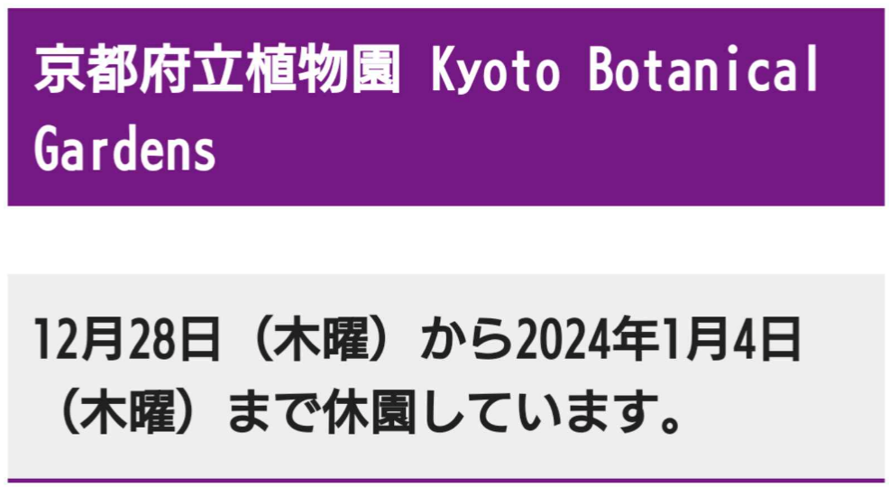 年末年始に京都植物園で探鳥しようかと思った人は、ご注意。