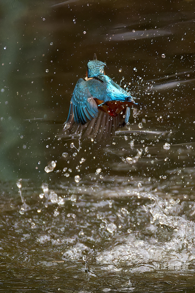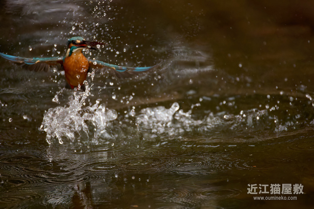 着水点をど真ん中にとらえられてて、タイミング的にも間に合ったのはわかったのですが、その後で浮上してきたカワセミが左側から出てきたのもわかったので「なんとかおさまってくれ」と祈っていましたが、祈りむなしく。