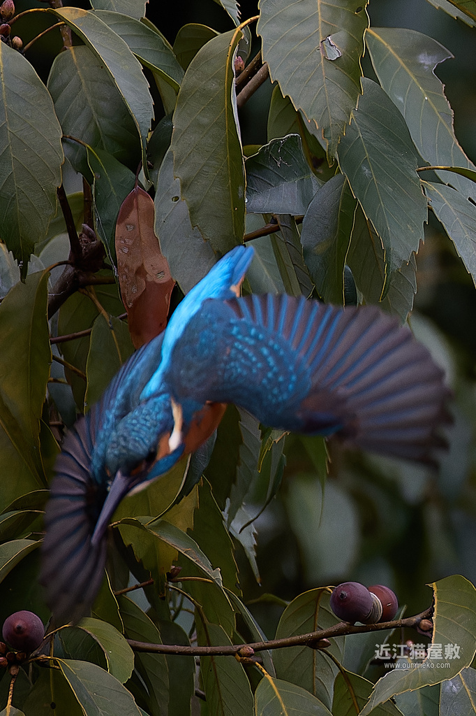 飛び去り中にカワセミが見切れちゃってるコマだけ、お情け?でピントがあってました。