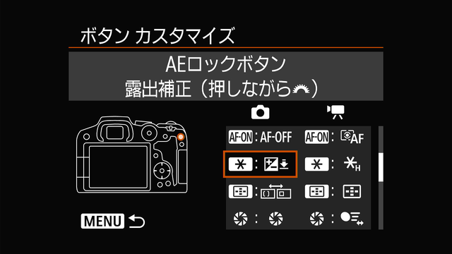 AEロックはそもそも私は使わないので、このボタンを押しながらダイヤルで露出補正を即座に調整できるようにしています。