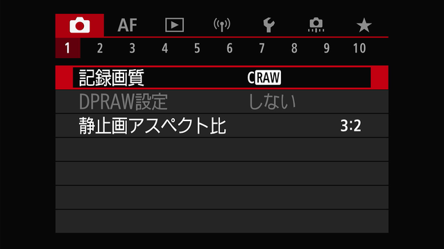記録画質は 「RAW」を選択しています。
