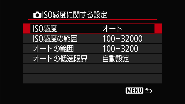 ISO感度に関する設定