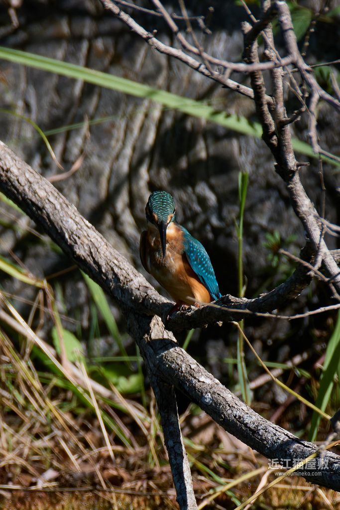 課長が繁殖期で育休中にいまのポイントに2羽のカワセミがいたのですが、なんと今日はおそらくその頃にいたカワセミが1羽やってきて狩りをしていました。