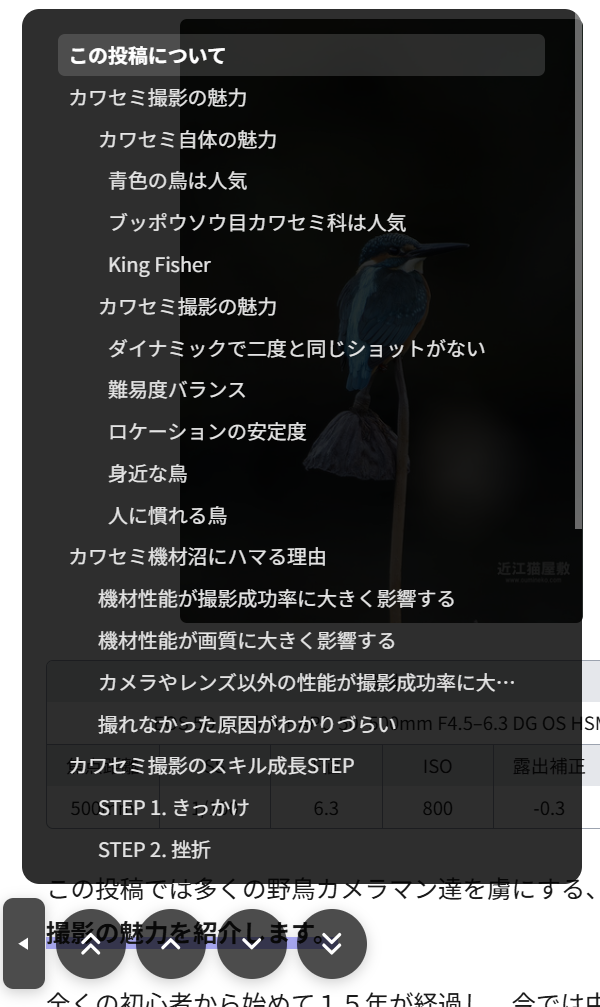 記事に写真を大きめに配置すると、どうしても記事が縦に長くなってしまうので見出しジャンプ機能を追加しました。