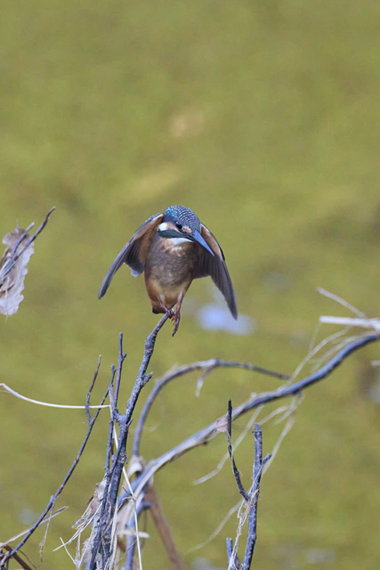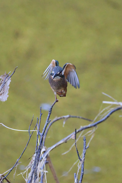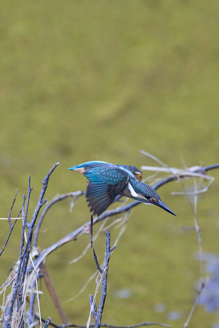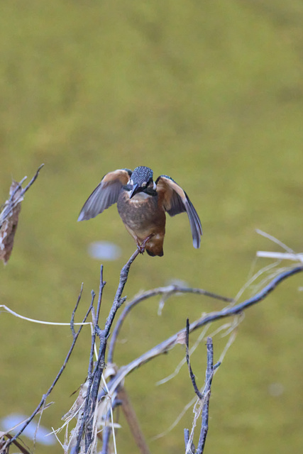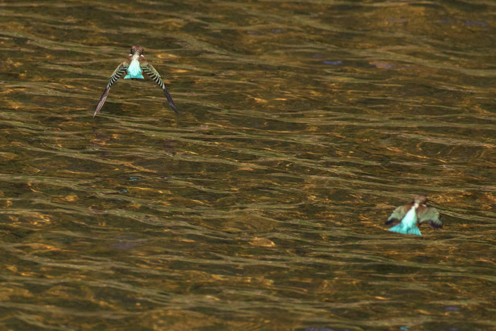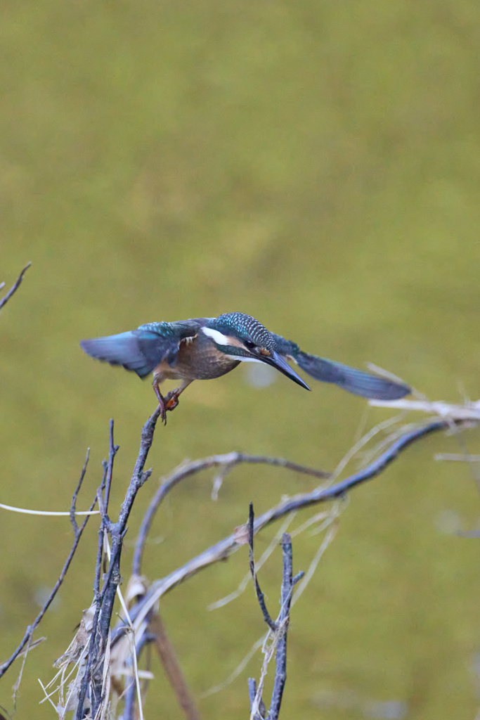 カワセミの若x2が入れ違いで同じ枝から狩りの練習をしていました。