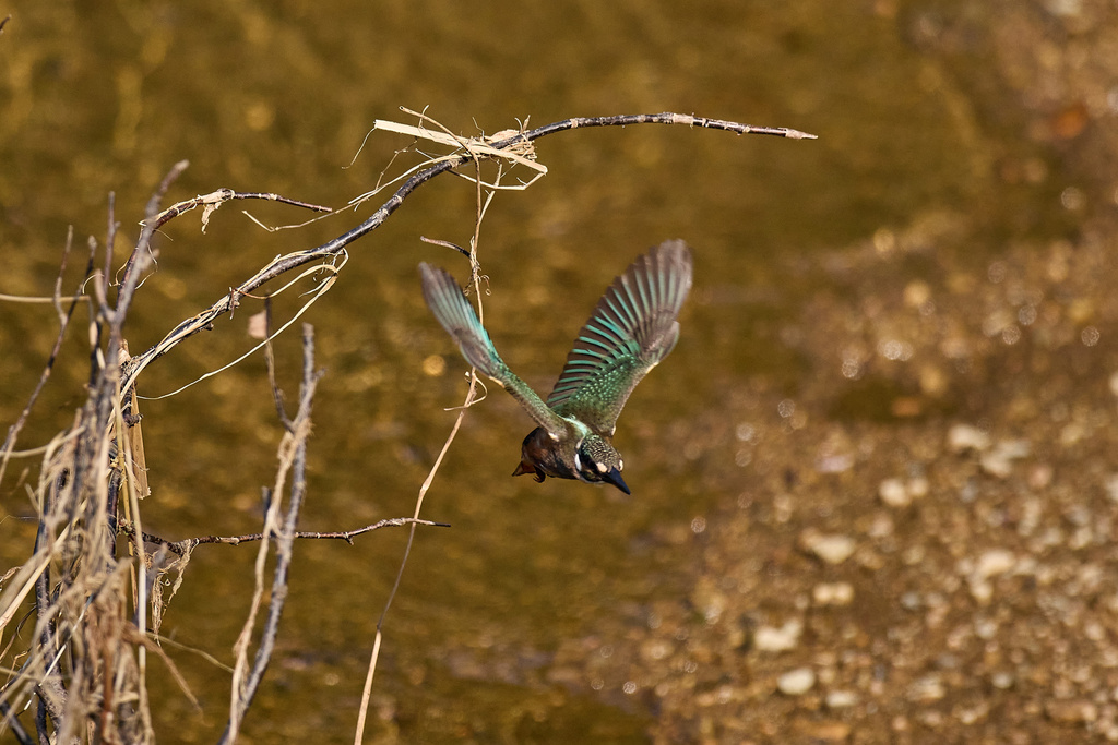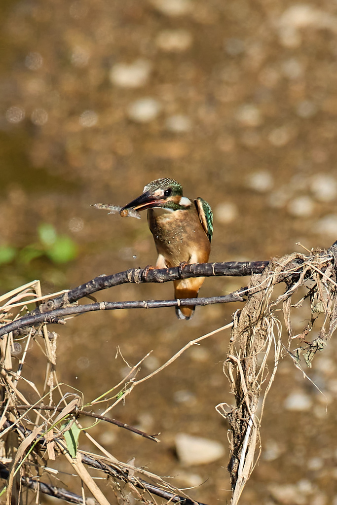 この写真は撮れる場所に飛び込んでくれましたが、この浅さでもちゃんとエモノを獲ってます :)