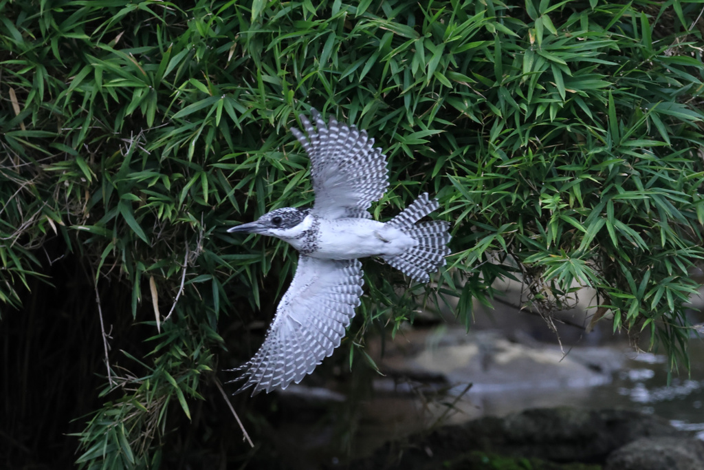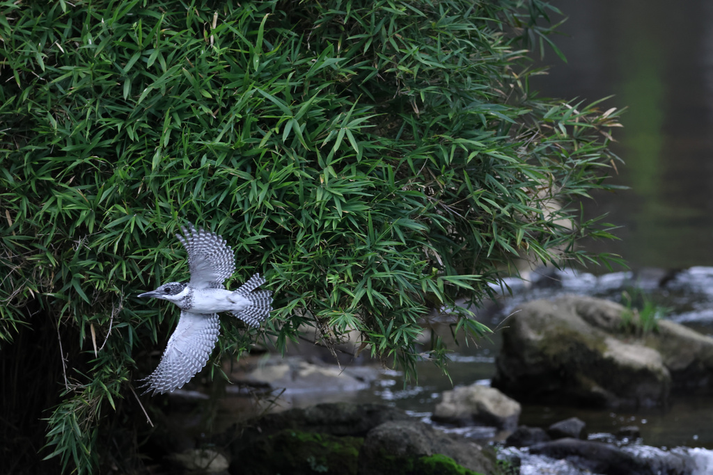 だいたいヤマセミが来ない時間が長いと、飛んでいくサギを撮って精神的安定を図ることになります。