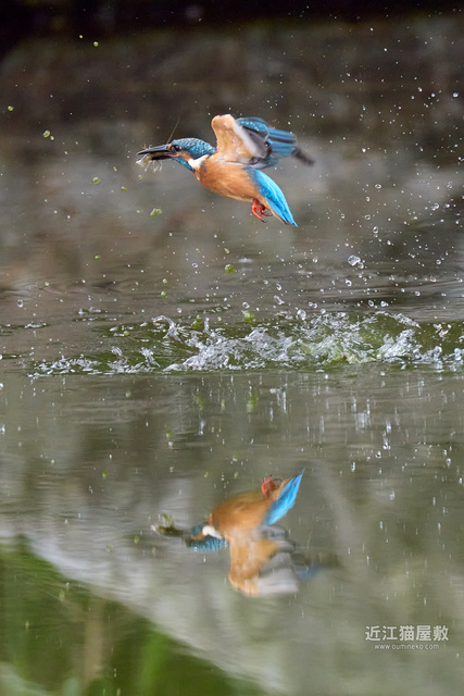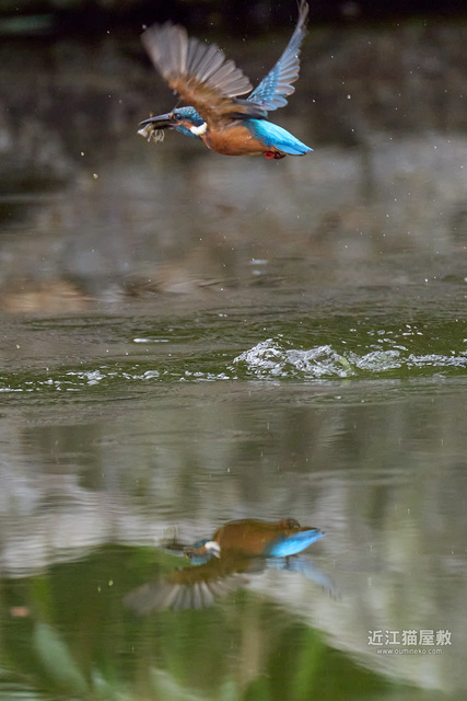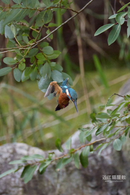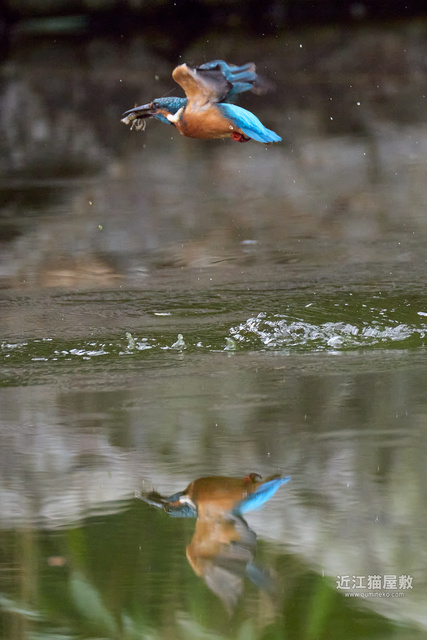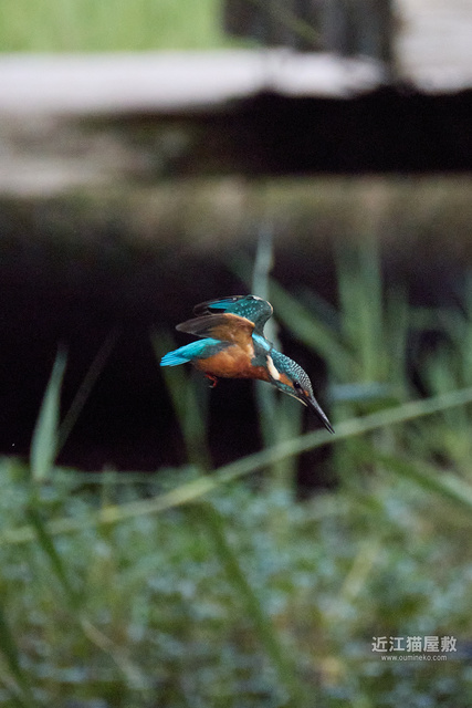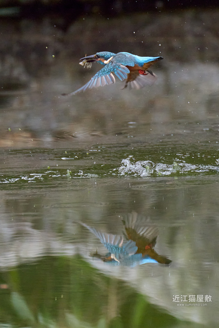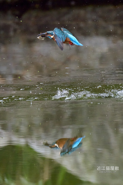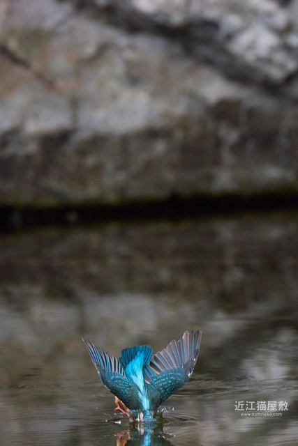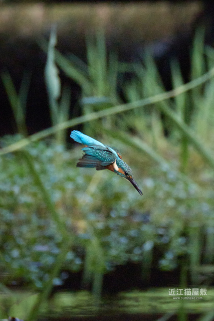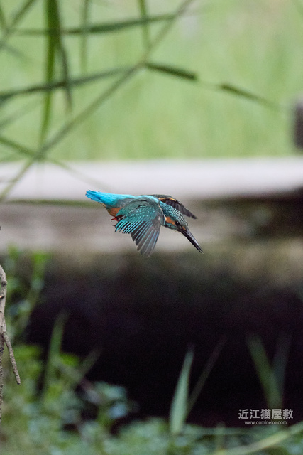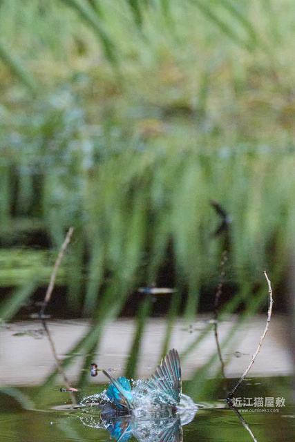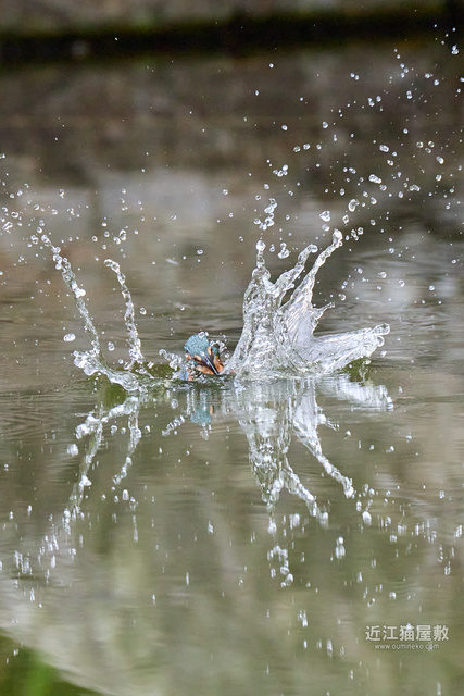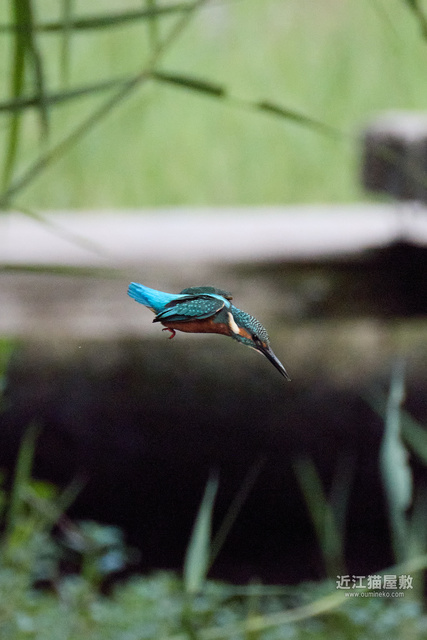 フルサイズという事で余裕があるので今回は飛び出し~飛び込み、浮上、飛び去りまで全てカワセミをフレーム内にいれての撮影です。