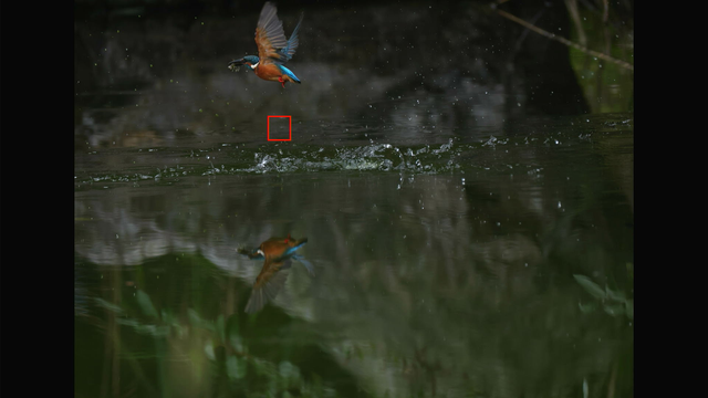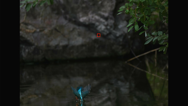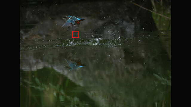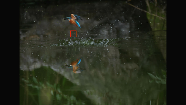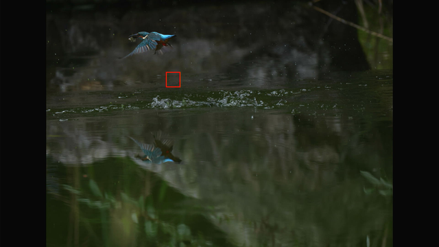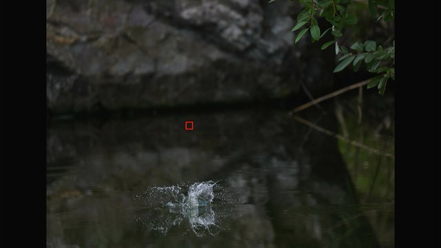 つまり、EOS R5 mark IIのトラッキングは条件が良ければ、カワセミの飛び込みでも完全に追従してくれるということです。
