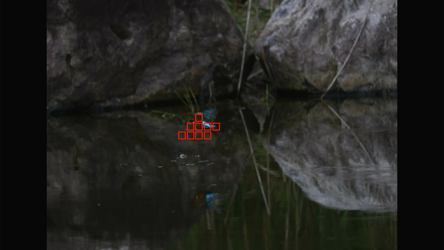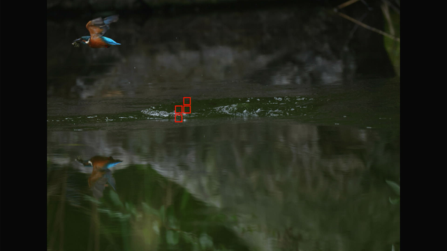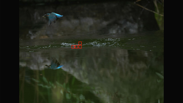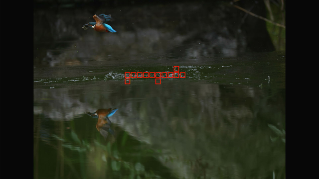 1コマ目は水面に写るカワセミを動物として検出してくれてるのが面白いですね(これが数コマ続いてます)w