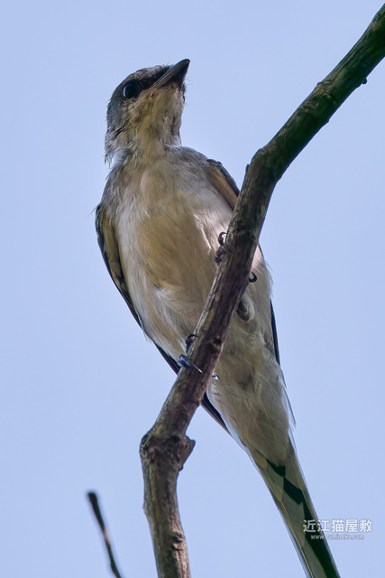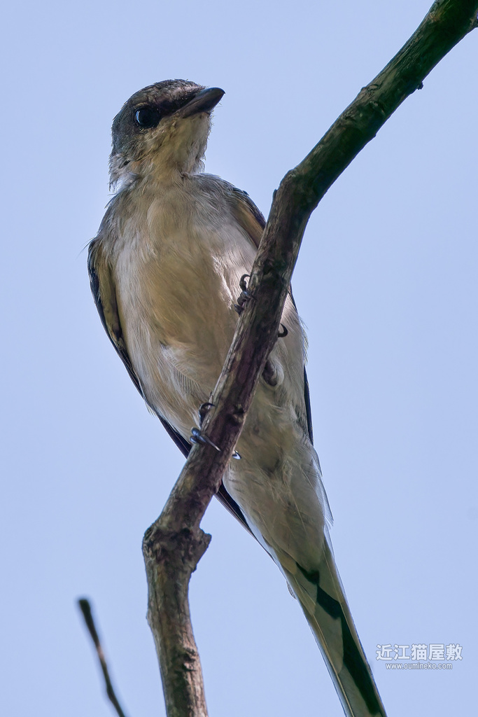 空バックで撮影的にはかなり厳しいシチュエーションなのですが、サンショウクイは彩度の低い鳥なこともあって綺麗にRAW現像できて満足 :)