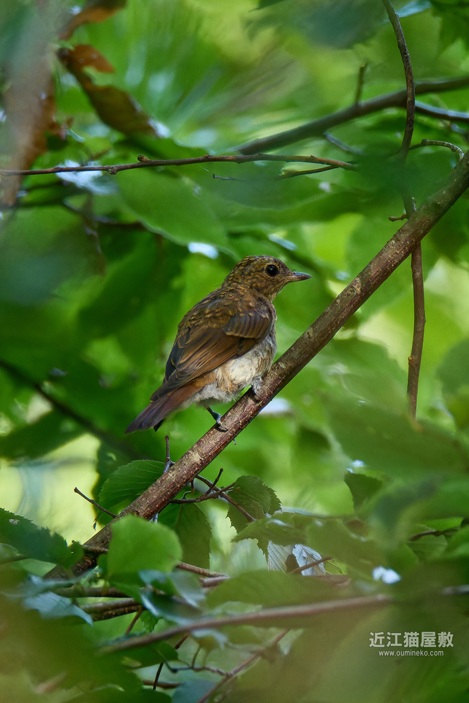 幼鳥は音もなく少し遠くの枝に止まったのをパシャリ。
