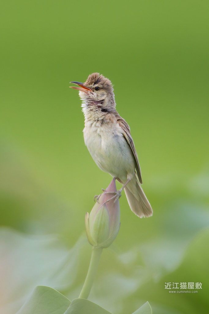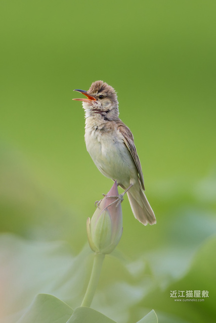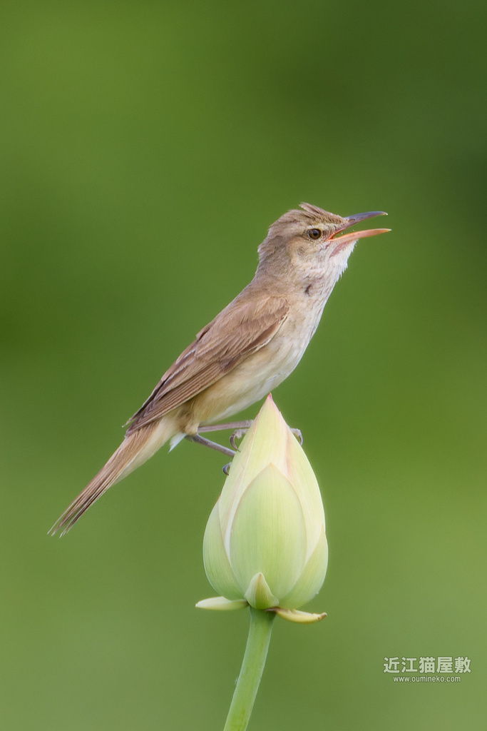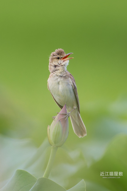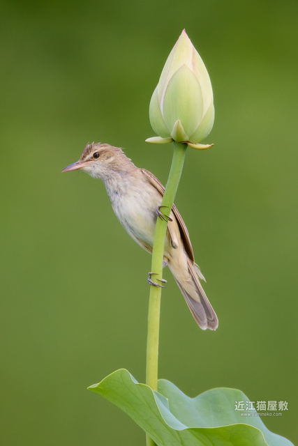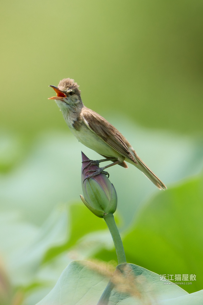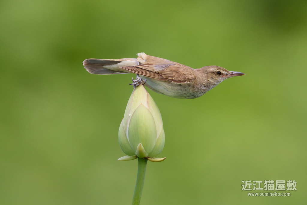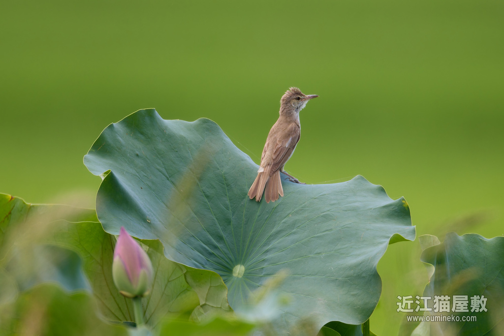 オオヨシキリは大きいのもあって、開いた蓮の花にとまることは滅多にありません。