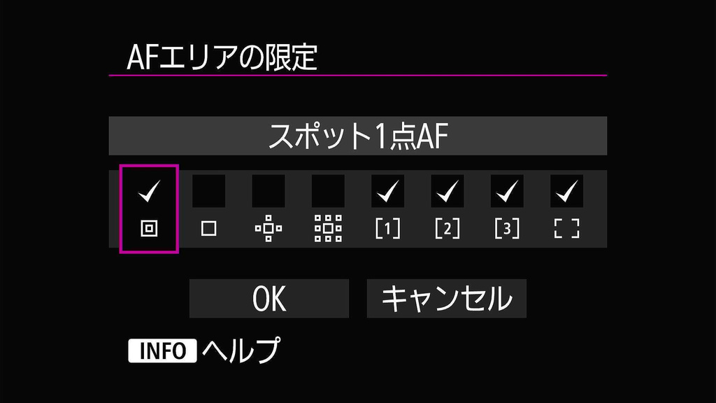 そして、AFエリアの限定で使用しないAFエリアはチェックを外します。