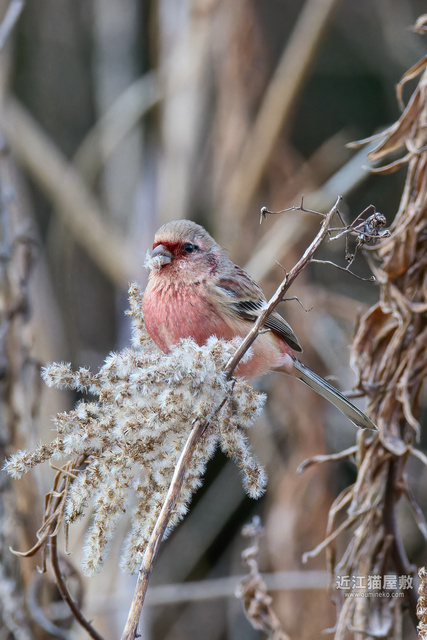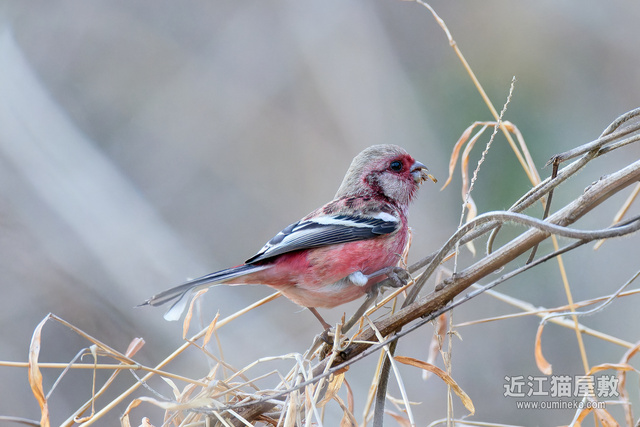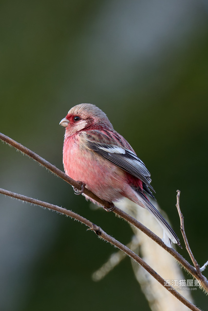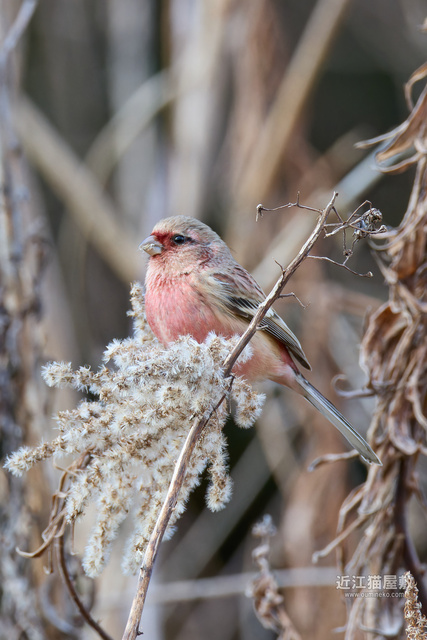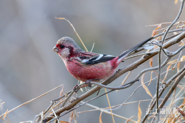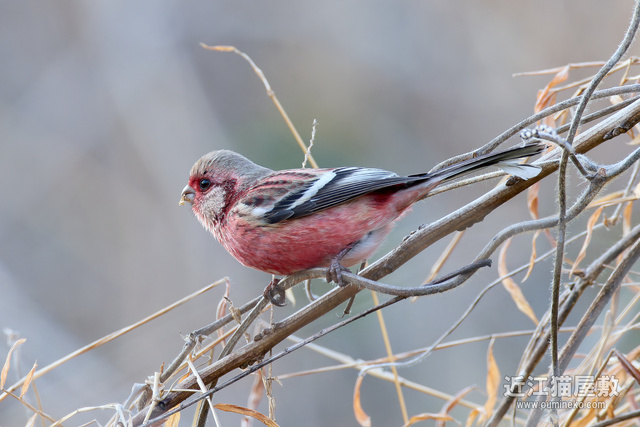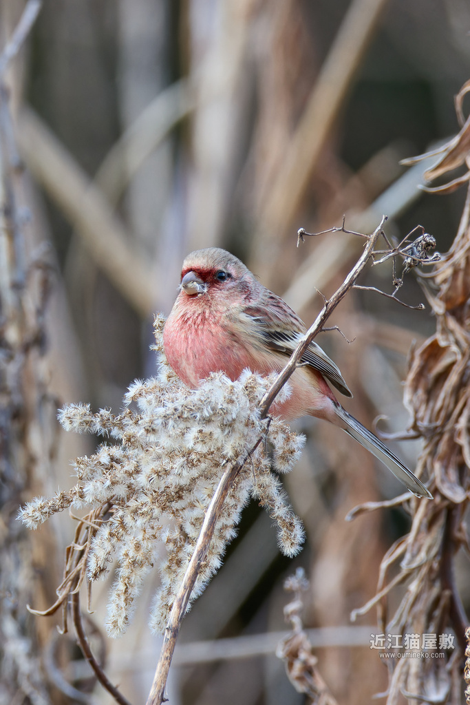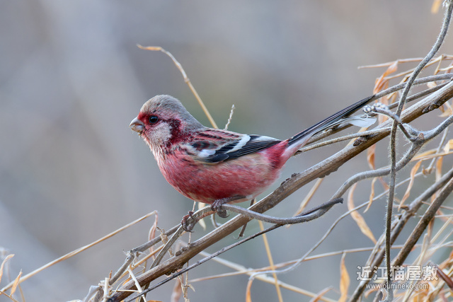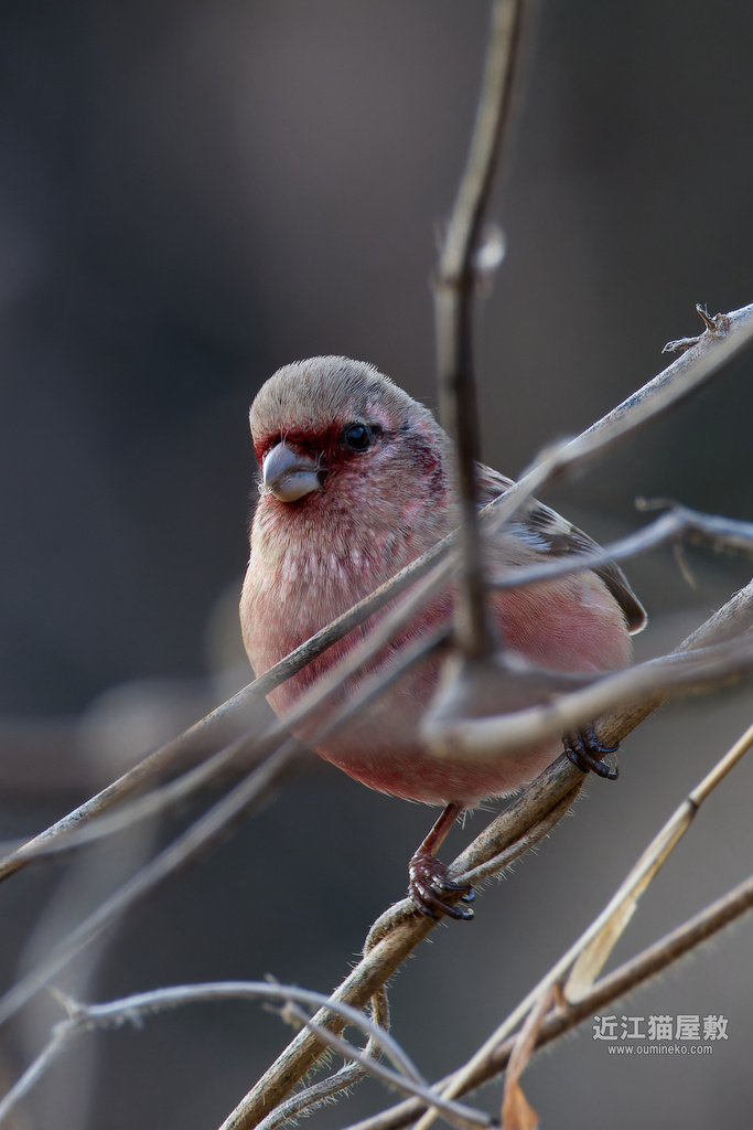 ベニマシコって赤くはあるんですが、現場で見るとピンクというか...白い鳥が薄くピンクがかったように見えますね。