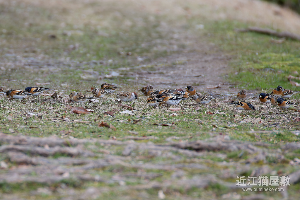アトリは地面に降りるときも群で降りることが多いので、「え?これ全部?」みたいな感じで一瞬目を疑ってしまいますね。