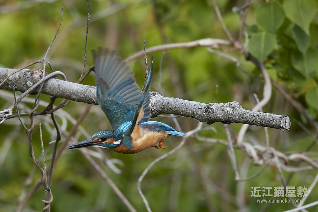 いつもならただの枝から枝への移動のような水平飛行から、いきなり途中で飛び込んで「ありゃ」って感じでした。