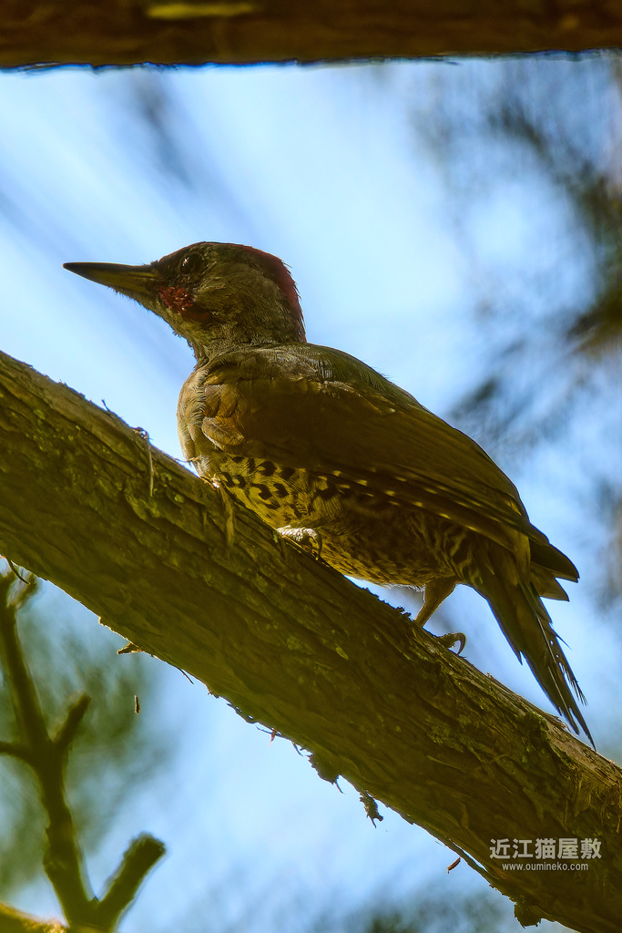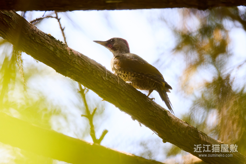 アオゲラ 枝被り&逆光