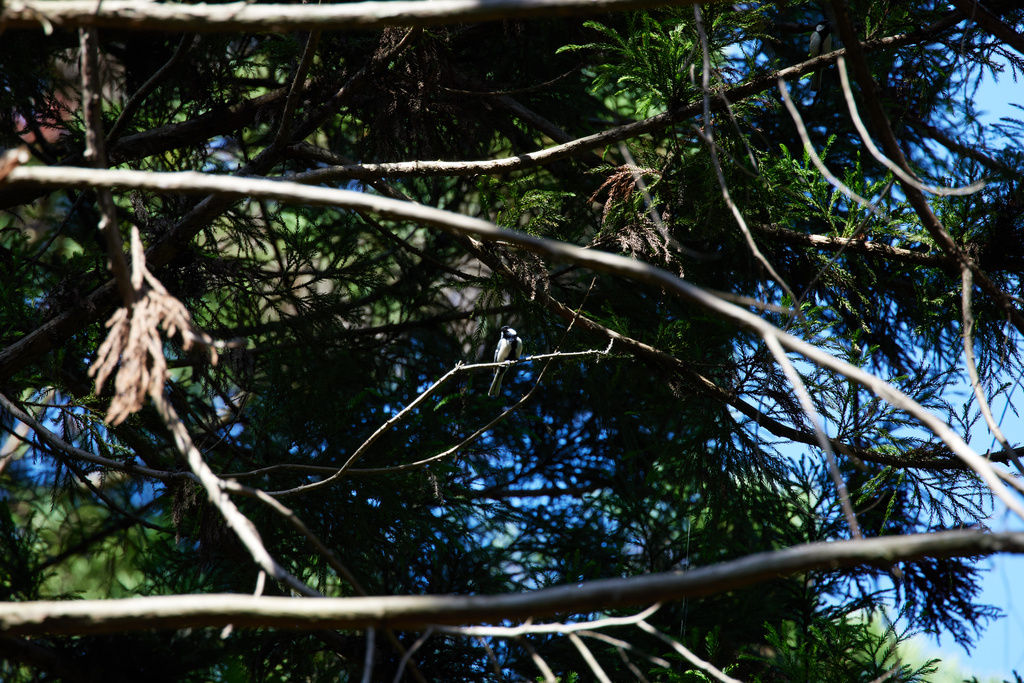 光がシジュウカラに直接あたってて、RAWの本当の生ではパープルフリンジが凄いんですがうまく補正してくれてますね。