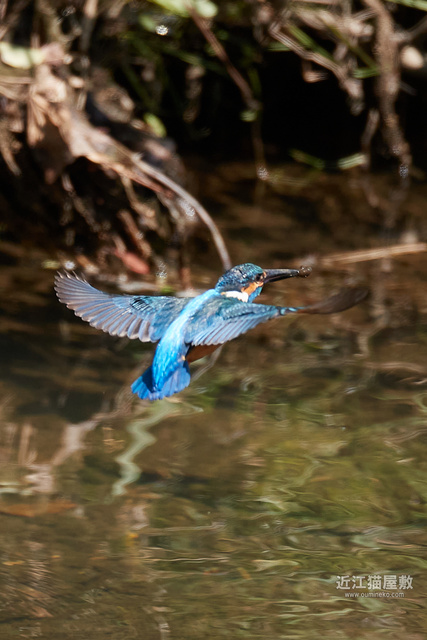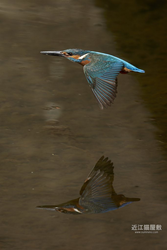 何気なくカワセミの飛翔を撮ってるけど、ミラーレスはEOS R3以外の電子シャッターだと本体と水面に写る姿に違いがあることが多いね。