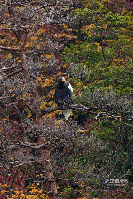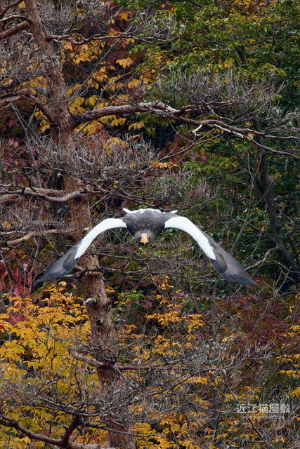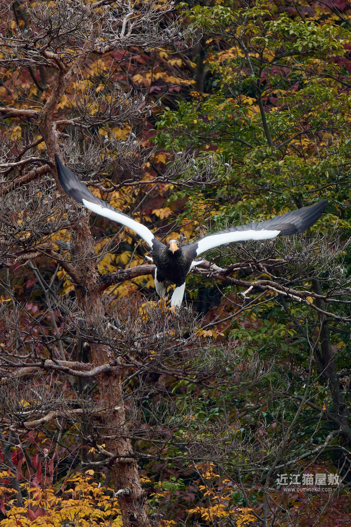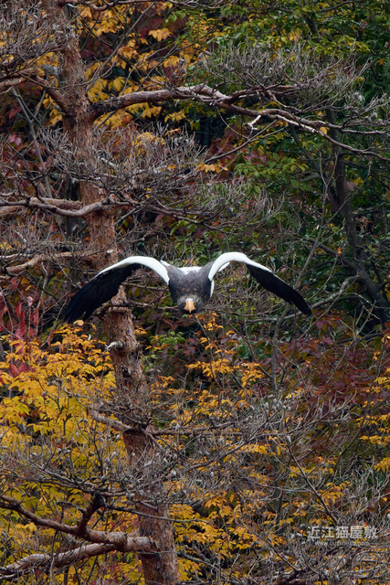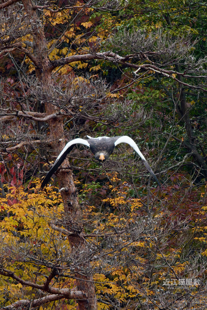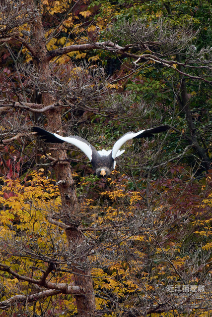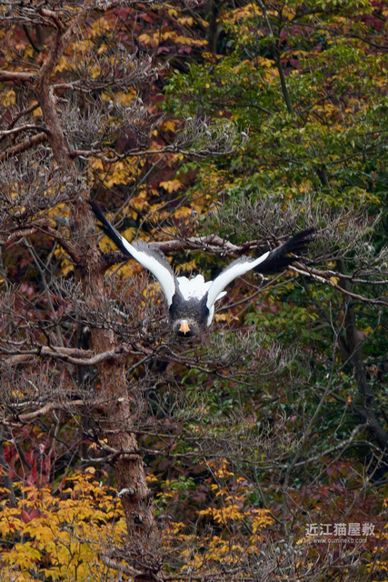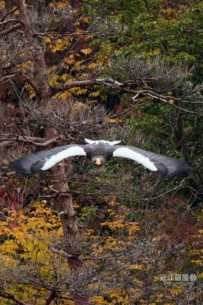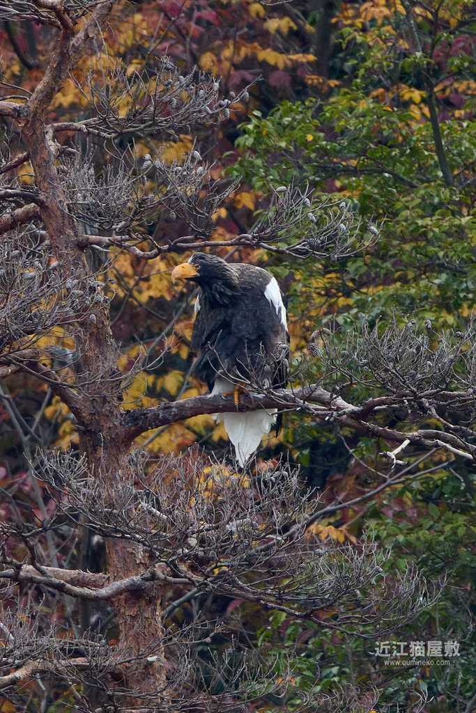 オオワシは毎年このくらいのタイミングで飛来しますが、紅葉と一緒に撮れる期間は短いのでとりあえず。
