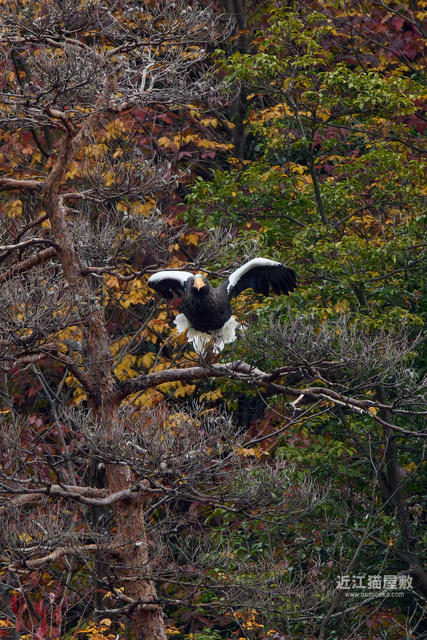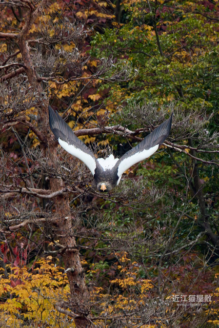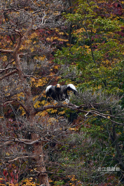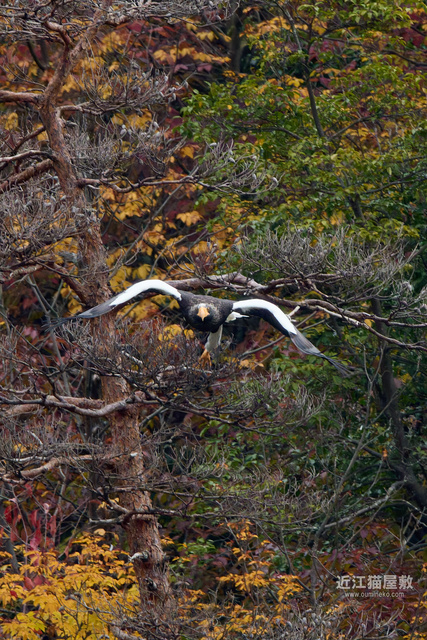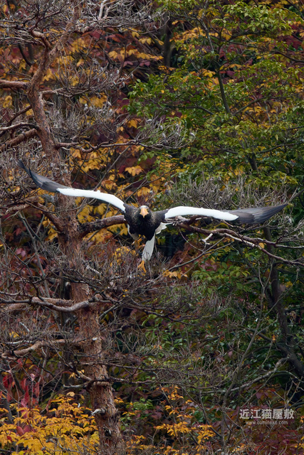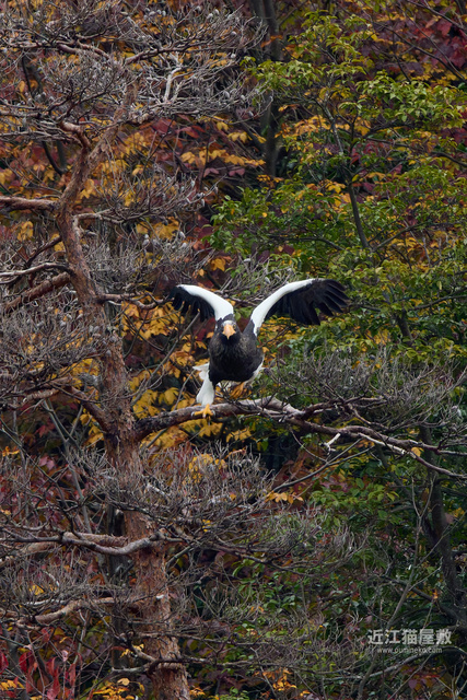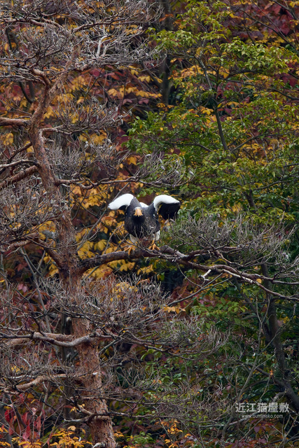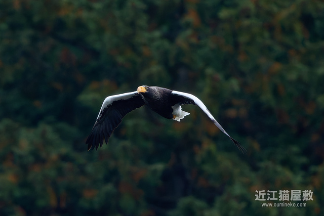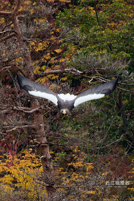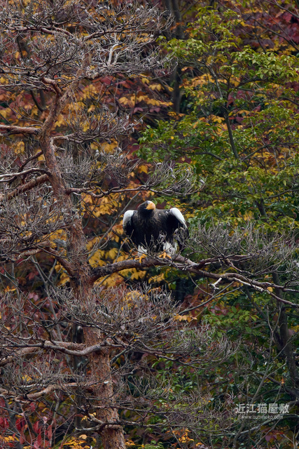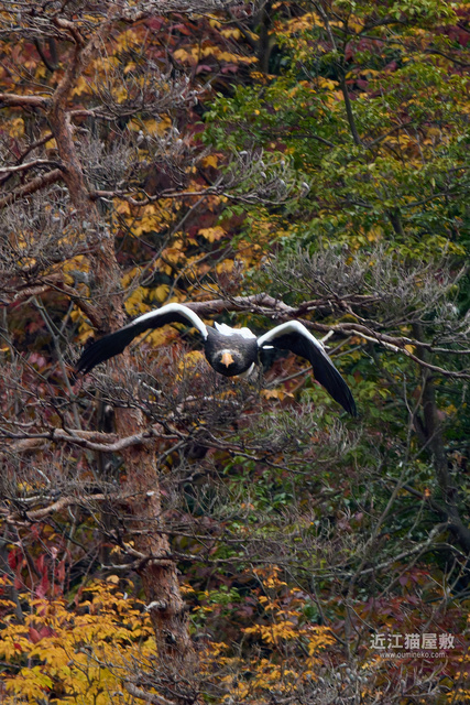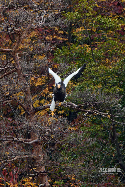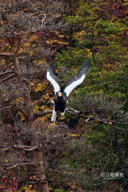 オオワシは毎年このくらいのタイミングで飛来しますが、紅葉と一緒に撮れる期間は短いのでとりあえず。
