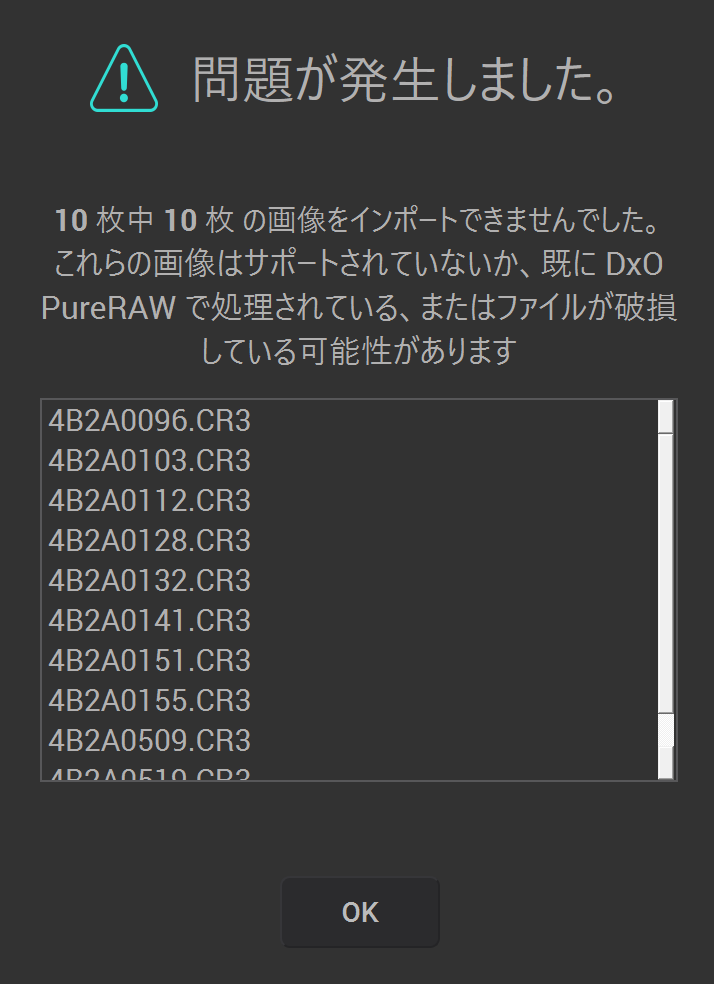 DxO PureRAW4で処理できない事は確認したので、当面はどうしようもないかも。