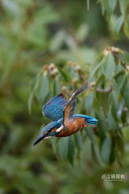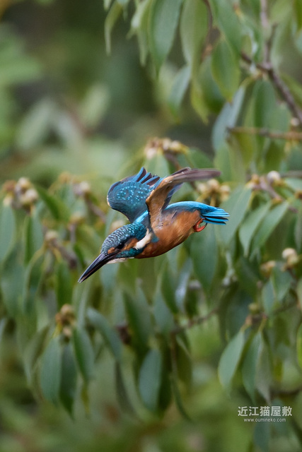 飛び出しから飛翔(下降)中にずっとカワセミをフレームに入れ続けるのは大変です。