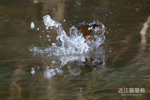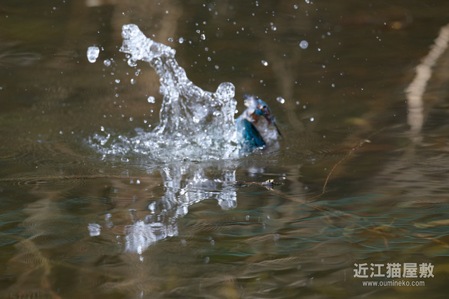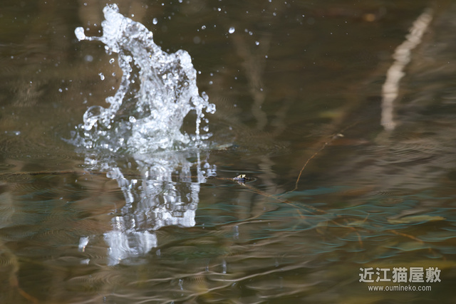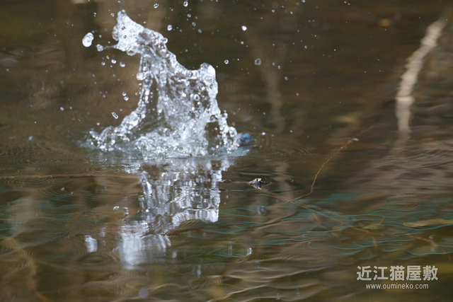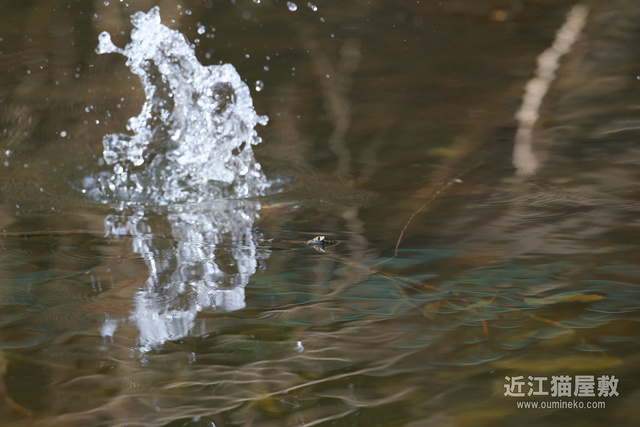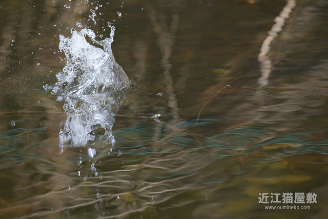 ただ、やはりEOS R5 mark IIでのカワセミ撮影で唯一の弱点が、この着水~浮上の後半までは動物検出が効かないので、どうしてもそれっぽいものを掴んでしまう点ですね。
