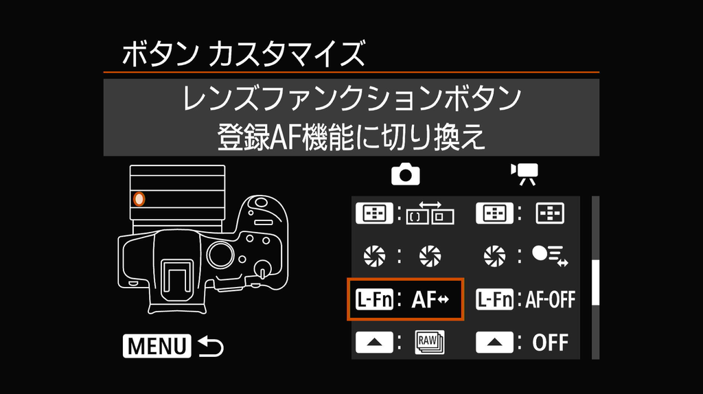 レンズファンクションボタンを押している間はトラッキングをOFFにして、中央スポット1点でAFできるようにしました。