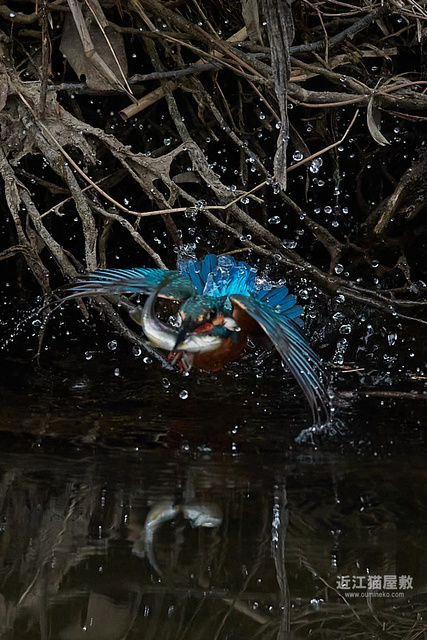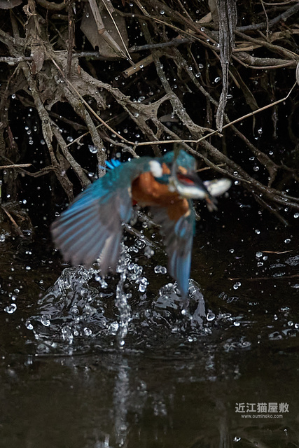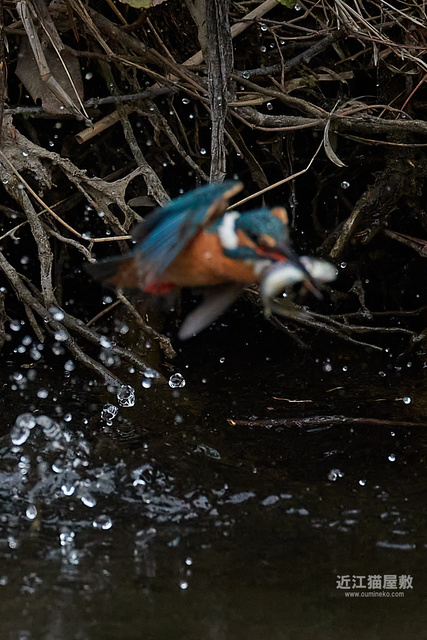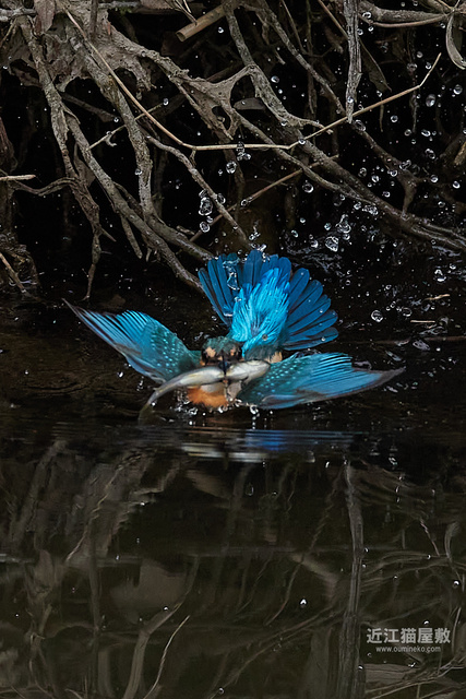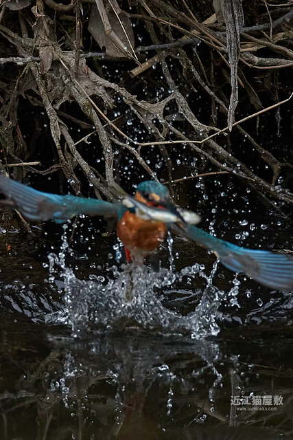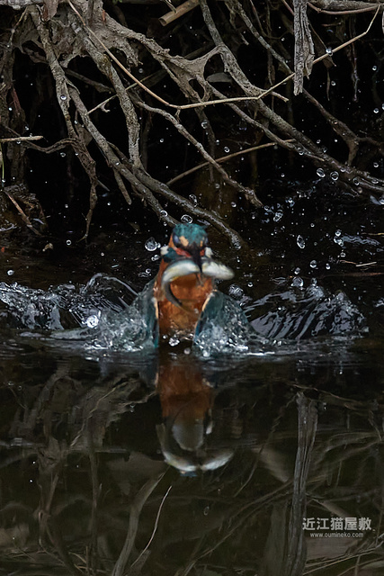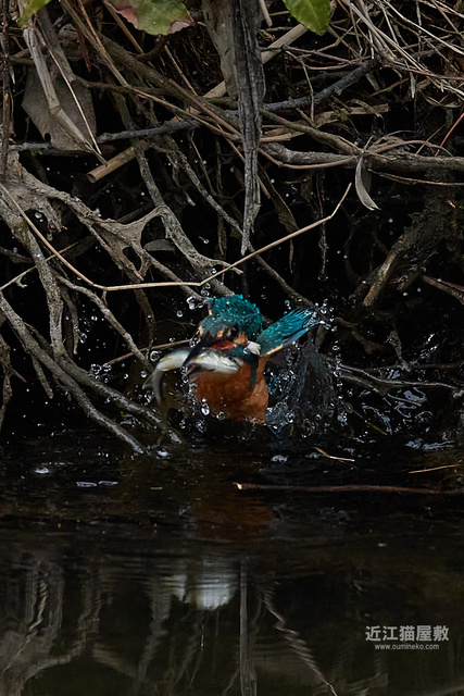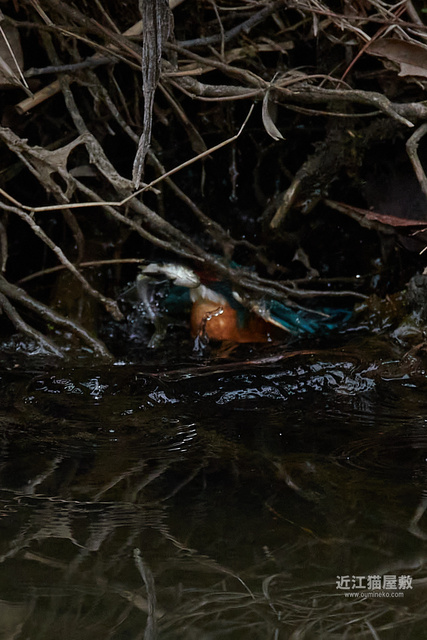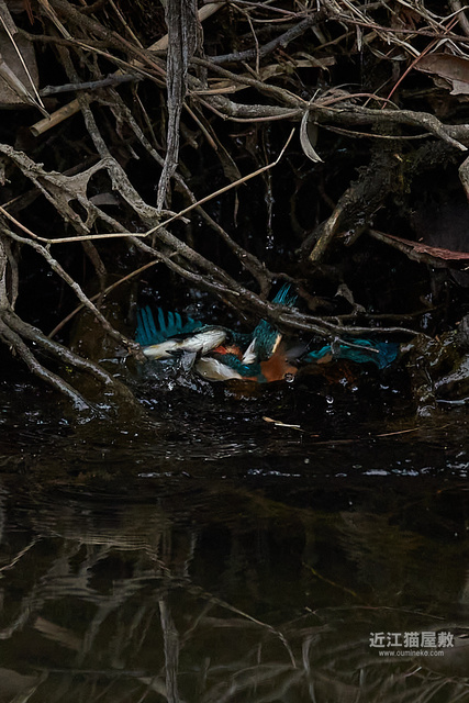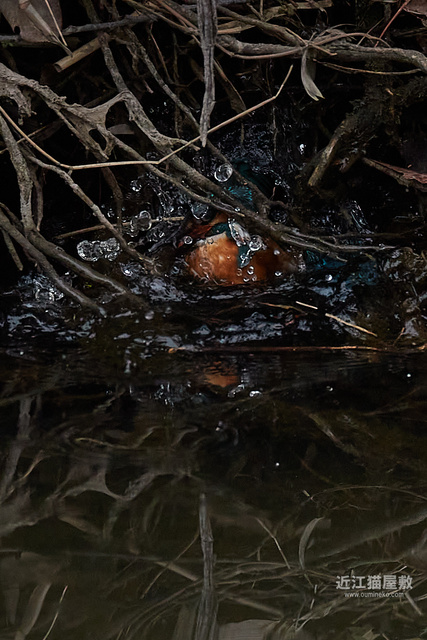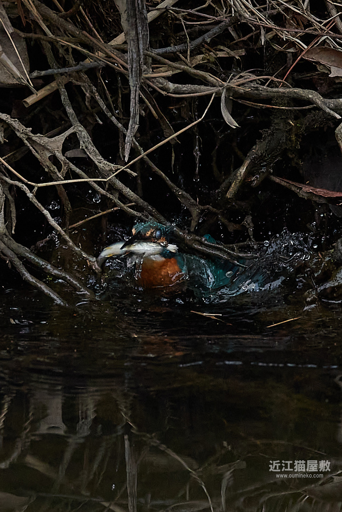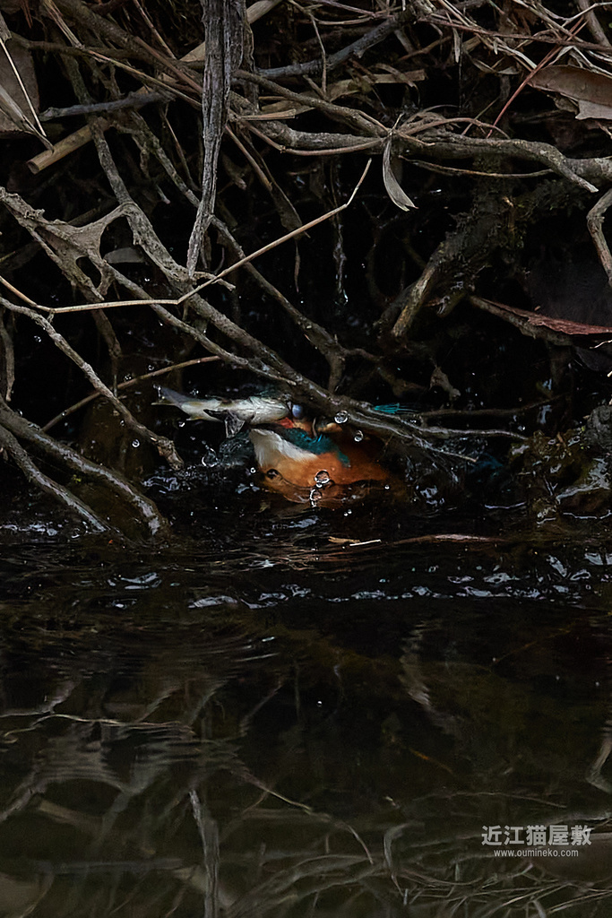 カワセミが頑張って枝の間から浮上してきてますね。