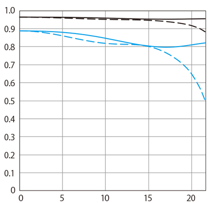 以下は単焦点EF300mm F2.8L IS II USMのMTF。