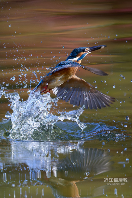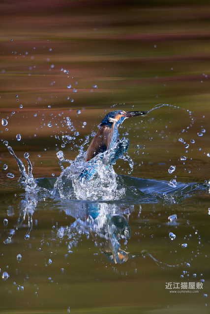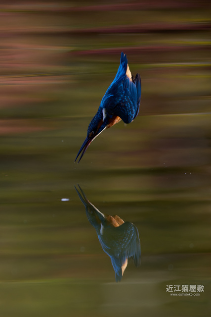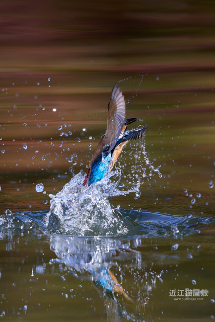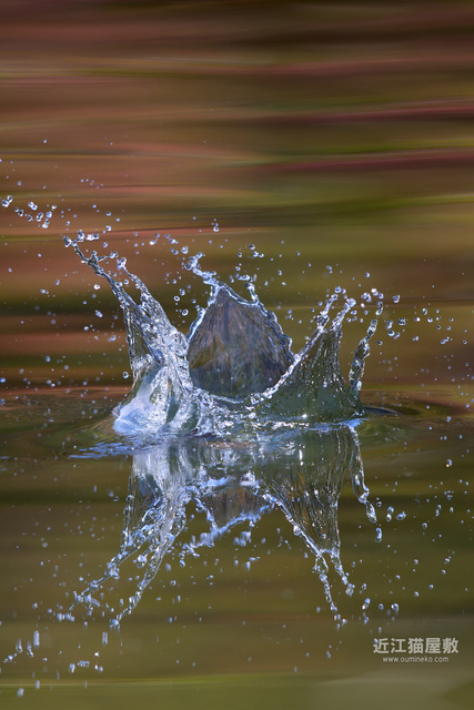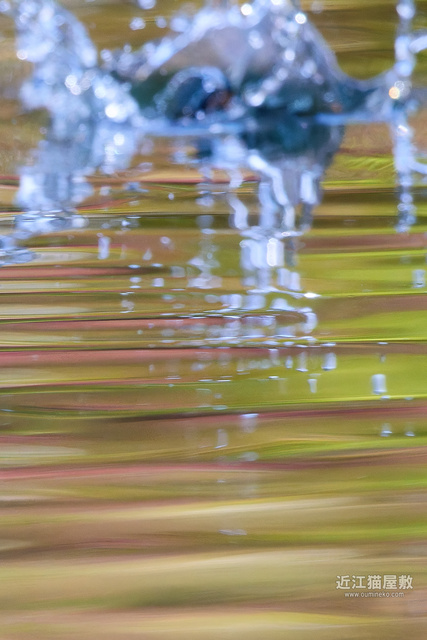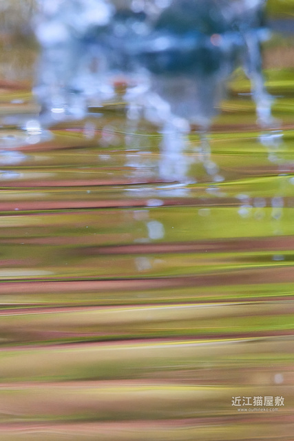 紅葉樹が水面に写り込んでなんだか幻想的な背景に。